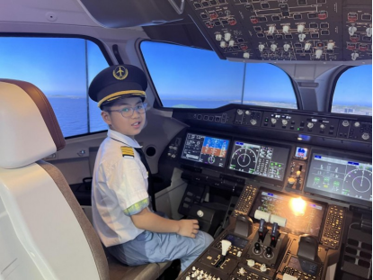 【实践研学行】环节,孩子们穿上机长服,化身小小机长,通过C919飞行基础操作教学,认识飞机操作部件,在模拟舱进行飞行实操体验;并在C919塔台陆空通话语言课程中,沉浸式感受飞机与塔台的日常工作。
