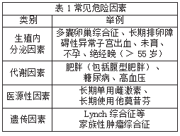 主要发病机制:长期无孕激素拮抗(孕激素相对不足)的雌激素暴露。常见危险因素见下方表1: