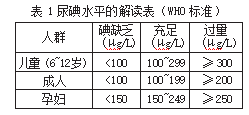 (1)为什么检测尿碘?人体摄入的碘约90%经尿液排出,因此尿碘浓度能准确反映近期碘摄入水平。(2)尿碘检测的方法。砷铈催化分光光度法(WS/T 107):我国标准方法,灵敏度高。电感耦合等离子体质谱(ICP-MS):更精准,但成本较高。快速检测试纸:适用于基层筛查。(3)尿碘水平的解读(WHO标准)。见表1。(4)尿碘检测的临床应用。孕妇监测:妊娠期碘需求增加,缺碘易导致胎儿脑发育障碍。甲状腺疾病患者管理:如甲亢、甲减患者的碘摄入指导。地方病防治评估:如克汀病高发区的干预效果评价。